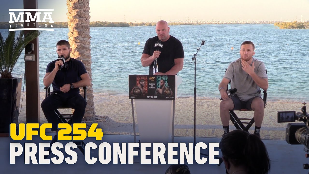 At the #UFC254 press conference, Khabib Nurmagomedov and Justin Gaethje discuss their upcoming showdown Saturday in Abu Dhabi. Watch UFC 254 LIVE here: http://go.web.plus.espn.com/c/482924/595608/9070?sharedid=MMAFightingYouTube