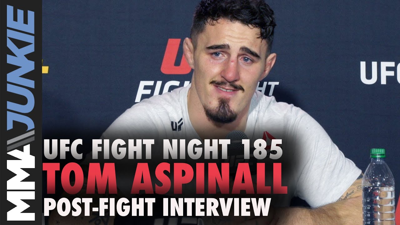 Tom Aspinall speaks to the media post-fight after his second-round submission win over Andrei Arlovski at UFC Fight Night 185 in Las Vegas.
