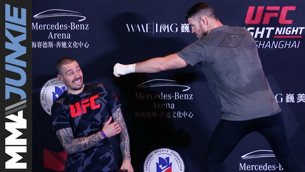 Speaking with Dan Hardy at UFC Fight Night 122’s open workouts, Michael Bisping shares his UFC-Shanghai gameplan and explains why he’s so handsome (to a reporter that “The Count” must have paid ahead of time).